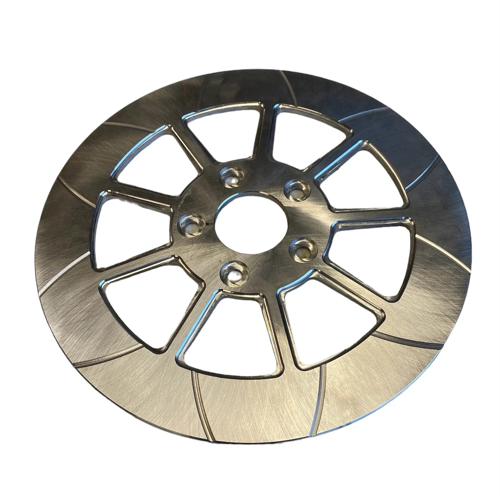 Match your rotors with your 9 spoke mags! Rotors line up with your mag spokes perfectly! 11.5 – Center Bore 1.995″ 11.8 – Center Bore 2.22″(comes with rotor adapter) Front rotors are notched for a speedo drive. These rotors are made out of 420 stainless steel. Direct bolt up on a factory 9 spoke.