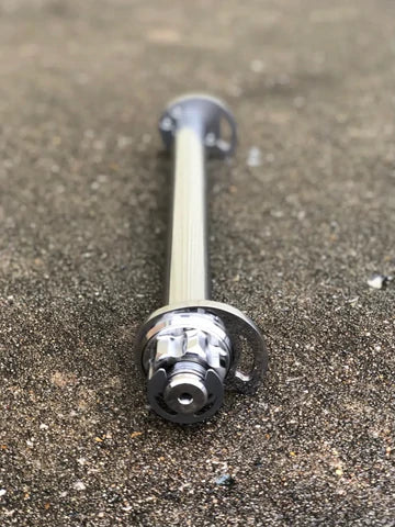 -Our kit consists of a beautifully designed axle, made of 17-4 series stainless steel, and is coupled to a high quality 12pt stainless steel nut and washer, and lastly secured by a stainless steel e-ring