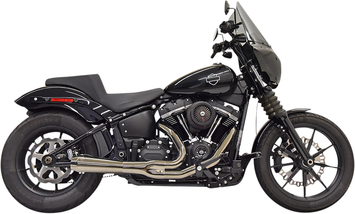 Stepped headers merge into a true reverse-cone megaphone muffler, 1-3/4″ headpipe steps up to 1-7/8″ into the collector to increase flow and improve performance, Removable spiral-core louvered baffle included, 4″ muffler body with billet end cap, Includes mounting hardware, Heat shield included, Includes 12 mm and 18 mm O2 port plugs, Made in the U.S.A.
