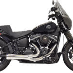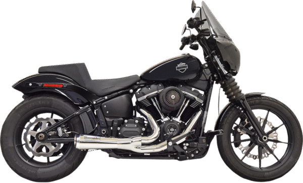Design with a louder, more aggressive tone than the Shorty Road Rage M8 Softail exhaust systems, Design with a louder, more aggressive tone than the Shorty Road Rage M8 Softail exhaust systems, Stepped 1 3/4 to 1 7/8 headpipes, Stepped 1-3/4″ to 1-7/8″ headpipes, Fully-welded one-piece design, Fully welded one-piece design, Utilizes an advanced inner collector for maximum performance, Utilizes an advanced inner collector for maximum performance, Baffle measures 10 x 2.25, Baffle measures 10″ x 2.25″, Mild steel construction and full heat shields on chrome and black; stainless system has partial heat shields, Hand MIG welding, Hand MIG welding, 18 mm O2 bungs with 12 mm adapters, 18mm O2 bungs with 12mm adapters, Made in the U.S.A., Made in the U.S.A.