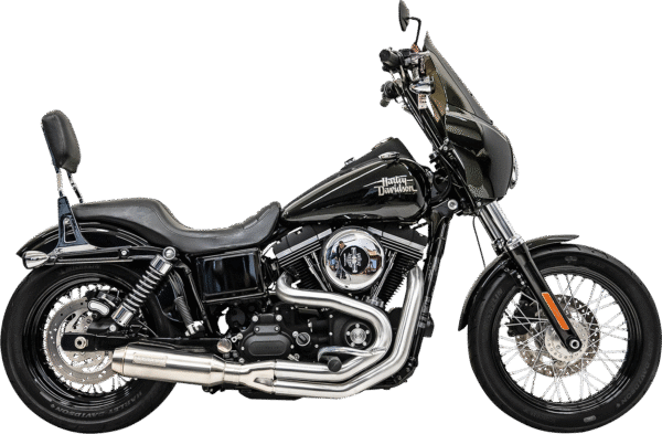 Hand TIG-welded stainless steel construction, 1-3/4 headpipes step up to 1-7/8 into the collector to increase flow and improve performance, 4″ diameter straight can 11″ muffler body includes matching aluminum end cap, Removable spiral-core perforated baffle features an all-new aggressive sound, Features 18mm and 12mm O2 ports with adapters and plugs, Full coverage stainless steel heat shields for the front and rear header pipes included, Made in the U.S.A., Fits Dynas with mid-controls ’91-’17 and forward controls ’07-’17
