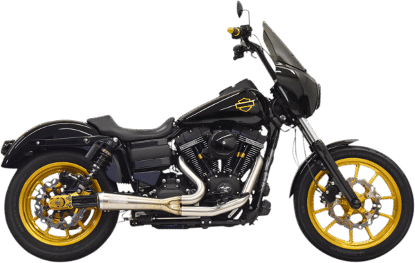 Design with a louder, more aggressive tone than the Shorty Road Rage exhaust systems, One piece 2-into-1 stepped headers with Upswept Megaphone Muffler, Stepped 1-3/4 to 1-7/8 headpipes., Stepped 1 3/4″ to 1 7/8″ headpipes, Fully welded one-piece design, Utilizes an advanced inner collector for maximum performance, 10 megaphone muffler with a removable louvered baffle that measures 10 x 2.25, Stainless Steel 304 Construction, Mild steel construction and full heat shields on chrome and black; stainless system has partial heat shields, Removable end cap, 18 mm O2 bungs with 12 mm adapters, Hand Tig Welded, Discoloration is the result of tuning characteristics, cam timing, carburetor jetting and overheating, and thus is not covered by vendor warranty or caused by defective manufacturing, 18mm O2 Ports with 12mm Adapters and plugs, NOT LEGAL FOR SALE OR USE IN CALIFORNIA ON ANY POLLUTION CONTROLLED MOTOR VEHICLES., Fits Mid-Controls ’91- 2017 and forward controls 2007-2017, Made in the U.S.A., There is no warranty on exhaust pipes and mufflers with regard to any discoloration. Discoloration (blueing) is the result of tuning characteristics, cam timing, carburetor jetting, overheating, etc., and is not caused by defective manufacturing., Installation of a new exhaust system may change your motorcycles fuel-air mixture requirements. Please consult the exhaust manufacturer directly with questions regarding any modifications that may need to be made during. or after, installing their product., NOT LEGAL FOR SALE OR USE IN CALIFORNIA ON ANY POLLUTION CONTROLLED MOTOR VEHICLES