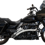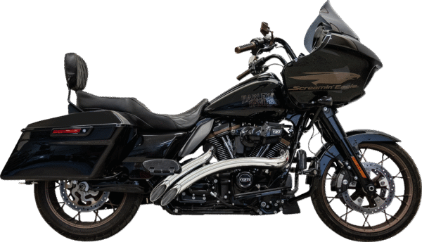 Sweeper Radial Exhaust System with Heat Shields – Chrome Radial styling and aggressive sound, Stepped headpipes 1-3/4″ into 1-7/8″, Full coverage heat shields, Non-removable baffles, 18 mm O2 bungs with 12 mm adapters, Made in the U.S.A.