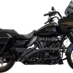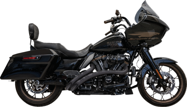 Sweeper Radial Exhaust System with Slotted Heat Shields – Black Radial styling and aggressive sound, Stepped headpipes 1-3/4″ into 1-7/8″, Full coverage heat shields, Non-removable baffles, 18 mm O2 bungs with 12 mm adapters, Made in the U.S.A.