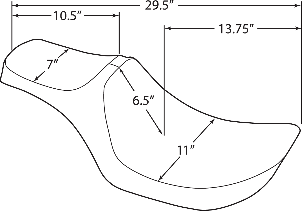 Automotive-grade vinyl cover, Molded polyurethane foam for comfort and styling, 3/16″ ABS thermoformed seat base for a perfect fit, with a carpeted bottom and rubber bumpers to protect paint (unless otherwise noted), Fits with all Drag and most Harley-Davidson sissy bars, Includes all mounting hardware, Seat is made narrow up front for better leg clearance, Made in the USA