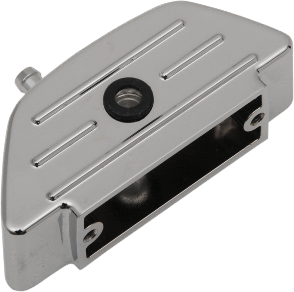 Rear Master Cylinder Reservoir – FLT/FXR Accepts OEM – style cover, gasket, and mounting hardware, Sight glass is installed