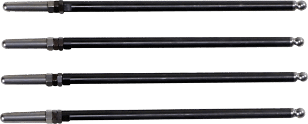 Maintains maximum valve lift; increases stiffness and column rigidity, Maximizes valve-train stability to increase engine rpm, horsepower and torque output, Minimal adjustment parameter eliminates flex and loss of valve-train stability problems, Individual length intake and exhaust pushrods keep the adjustment extension to a minimum, Designed to exceed performance engine needs using larger lift cams and high spring pressures while maintaining proper and critical oil flow to top-end valve gear, Made from CNC-machined 7/16″ tapered 4130 chromoly steel tube; 32 thread per-inch adjustment, Double jam nut lock system, HP+ pushrod wall thickness of 0.095″; Race Series wall thickness of .120″, Can be used with hydraulic or solid lifters and street or race engines; “Race” Series recommended when extreme spring pressures are used, Fueling pushrods can be used with factory pushrod tubes, Made in the U.S.A., Require removal of rocker covers and rocker arm supports.