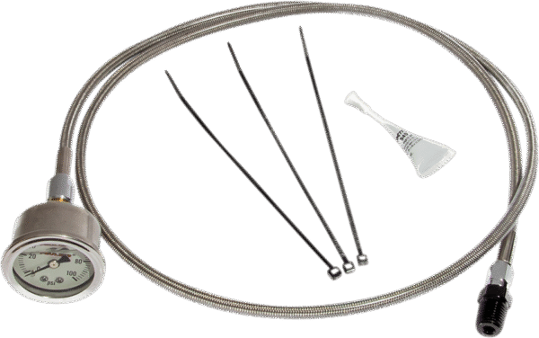 For M8 models, Allows you to check engine oil pressure using a quality liquid filled mechanical psi gauge while keeping your factory electronic gauge and or low oil pressure indicator light hooked up, Hooks up to the engine case via the pressure port to the oil filter, remove the factory 1/4 NPT plug and install the Feuling fittings, oil line routes up the right side frame rail, gauge fastens to the handlebars near the master cylinder