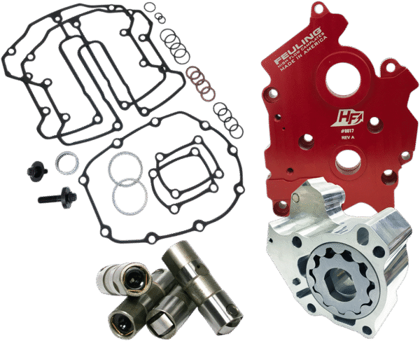 Combine all the needed components to finish your T/C? engine’s oiling system, These kits increase oil pressure, oil volume, engine oil flow and return oil scavenging, eliminating wet sumping and oily air cleaners; test results show 25?-35? cooler engine temperatures, 15?-30? cooler oil temperatures, 15-30 lbs (EU: 6,80-13,61 kg) more oil pressure and quieter smoother engine operation; results also show a substantial increase of oil pressure and 3 H.P. and 4 ft/lbs. (EU: 5,42 Nm) of torque to the rear wheel
