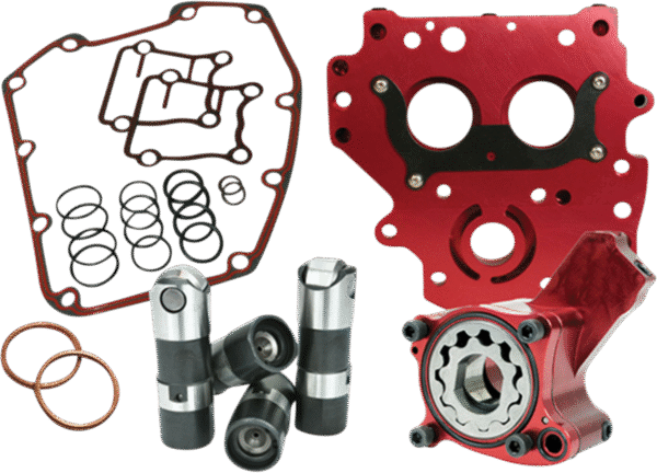 Combine all the needed components to finish your engine’s oiling system, Kit increases oil pressure, oil volume, engine oil flow and return oil scavenging, eliminating wet sumping and oily air cleaners; test results show 25?- 35? cooler engine temperatures, 15?- 30? cooler oil temperatures, 15-30 more lb of oil pressure and quieter smoother engine operation; results also show a substantial increase of oil pressure and 3 H.P. and 4 ft/lb of torque to the rear wheel, Includes bearing retainer plate and hardware.