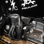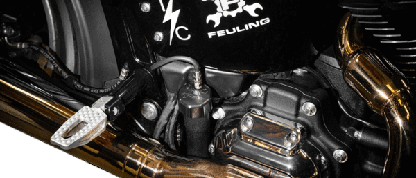 Billet dipsticks vent/breathe excessive crank case pressure from the oil tank through a PCV style breather, consisting of an oil separator system, perforated disc, replaceable filter element and umbrella flapper valve, Screws into the factory oil fill spout as a stock replacement part, Blowby is pressure that is forced past the rings and cylinders, pushed into the crankcase and then forced into the oil tank, Fueling test results show a decrease in engine oil sump levels, more freely/smoothe revving engine and increased MPG and decreased blowby, Removes unwanted build-up of blow by pressure in the oil tank, There are two ways to read the oil level with this dipstick, with the bike on the jiffy stand (FHS) Full Hot Stand or the bike upright and level (FHU) Full Hot Upright, This dipstick does get hot, use a glove when checking oil level, Includes 2 different venting style options for installing the dipstick: option 1 – 1/8 NPT breather vent fitting with internal porous filter element, option 2 – quick disconnect coupler fitting with rubber hose and filter element, It is important to get the correct hot oil level in your bike. Feuling recommends running the oil level 90%-99% full when hot, The oil pick up port is on the right side of the engine. Letting the bike idle or warm up on the kickstand will naturally fill the engine case and skew the oil level in the tank, Made in the U.S.A.