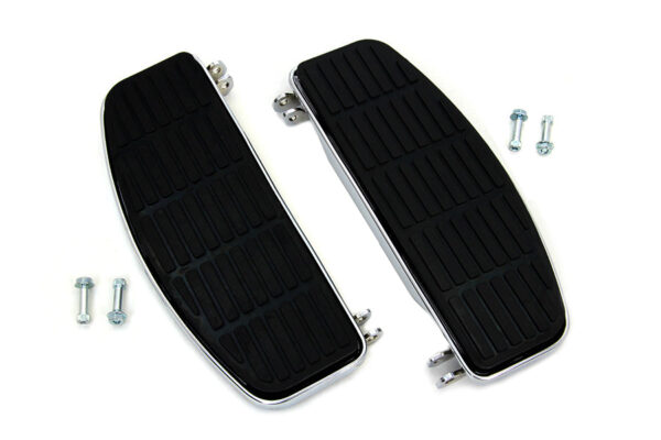 FXRP chrome D-shaped footboards with ISO-pads installed. Footboard set is for use on FXRP and FXD models with footboards. Specifically for FXRP with footboards. Mounting bracket features 10 inch spacing. *NOTE: Does not have buttons for mount stops.