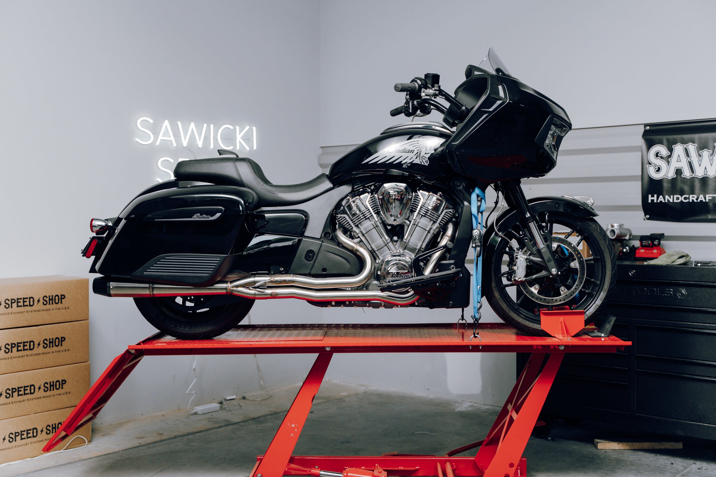 Indian Challenger Full Length Brushed Ss W/ Blk End Cap