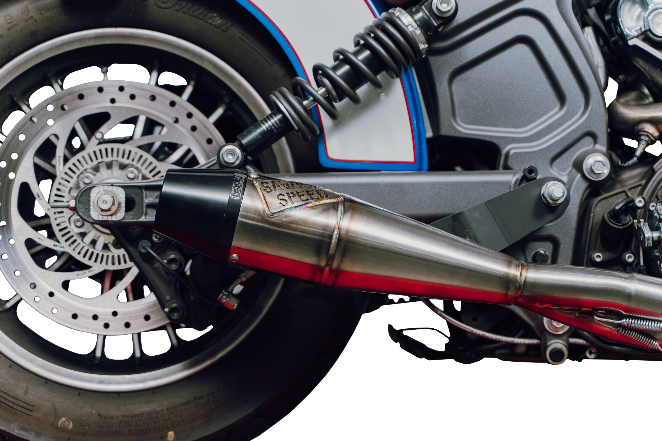 Indian Scout Mid Length Brushed Ss W/ Blk End Cap