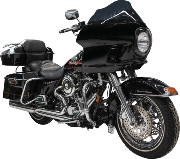 Classic reproduction FXRP-style fairing designed to elevate your motorcycle’s style and performance, Brings together the perfect blend of air management, design, and craftsmanship, Comes as a complete kit, ensuring that you have everything you need for a seamless installation, Polyester Primed Fiberglass Fairing – after test fit, it’s ready to hand to your painter, Powder-coated neck bracket, 7” headlight mount – headlight not included, Clear headlight cover with gasket, 9” dark smoke Flare™ windshield (part # 2310-0635), All necessary fasteners and hardware, Proudly made in the U.S.A.