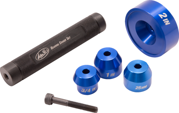 Adapters can be changed quickly to accommodate a wide range of bearing combinations, Durable steel handle and anodized aluminum drivers, Laser etched adapters for easy identification, Includes:, 2″ O.D. driver, 1″ I.D. driver, 3/4″ I.D. driver, 25 mm I.D. driver, Convenient molded tray for storage, Can be used with a hammer or shop press., Designed for use on ’00 and later Harley Davidson models.