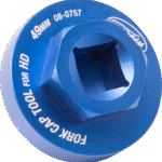 Used in the removal and installation of fork caps on Harley Davidson touring models with 49 mm forks, Protective O-ring reduces the risk of damage to the fork caps during removal and installation, Machined from 6061-T6 aluminum with durable blue anodizing and laser engraved markings, 1/2″ square drive