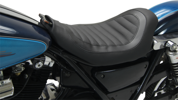 Perewitz Solo Seat – Hinge Mount – FXR Low, lean solo seats designed by Jody Perewitz, the fastest woman to ride an American V-Twin, High-quality construction, with a 16-gauge steel baseplate and carbon fiber vinyl insert, Feature tuck-and-roll stitching, Made in the U.S.A.