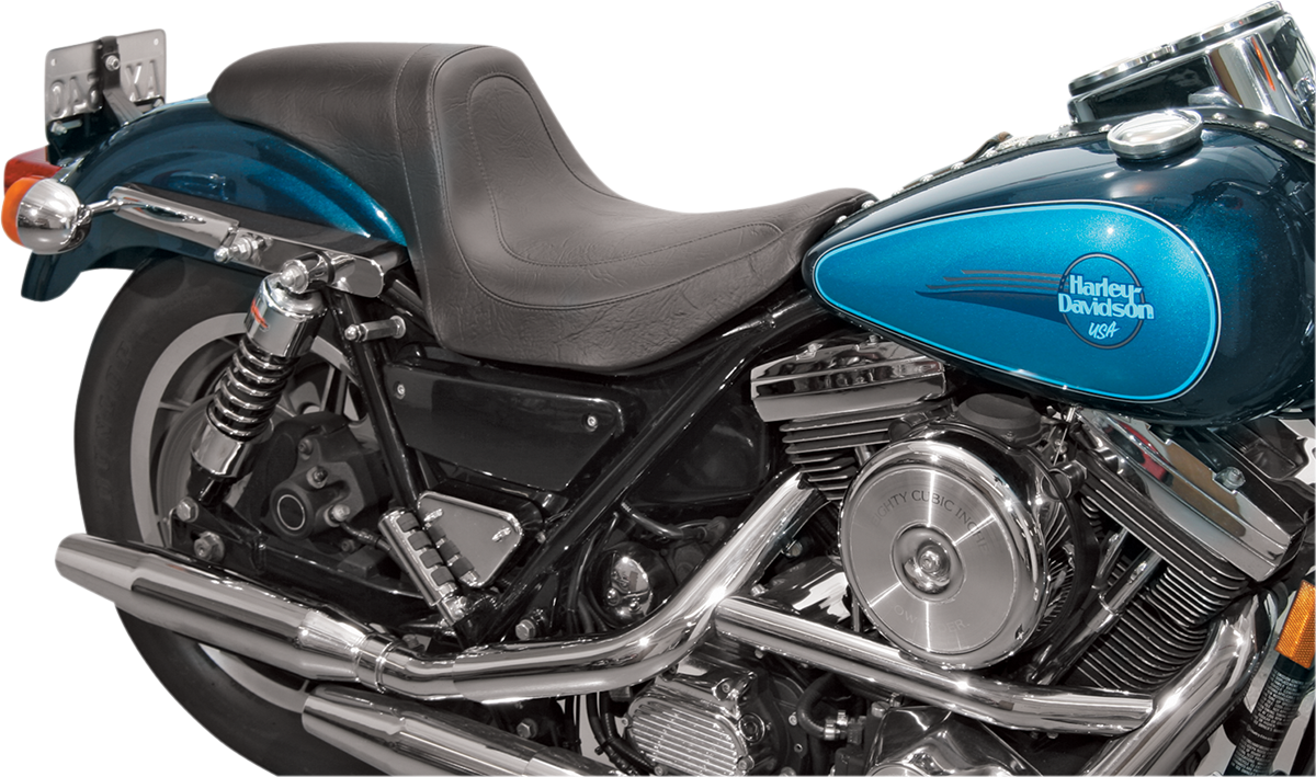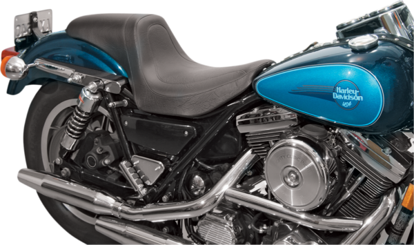 Seat – Fastback – Stitched – Black – FXR ’82-’00 Offers a reasonable degree of passenger comfort, Cut low for the rider with good back support, Expanded vinyl cover, Made in the U.S.A.