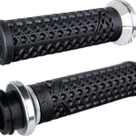 The Vans V-Twin Lock-On Grip System feature the classic Vans® waffle sole pattern and are built to deliver an amazing riding experience, 100% slip-free performance guaranteed, In-molded throttle tube with integrated application specific throttle actuation, Billet aluminum Lock-On™ style clutch side clamp eliminates the need for grip glue or safety set-screws, providing simple installation and removal, T15 Torx bolts provide extra secure clamping for solid, twist-free mounting, Proprietary medium-compound durometer improves overall comfort and durability, 130 mm overall grip length with flange, Made in the U.S.A.