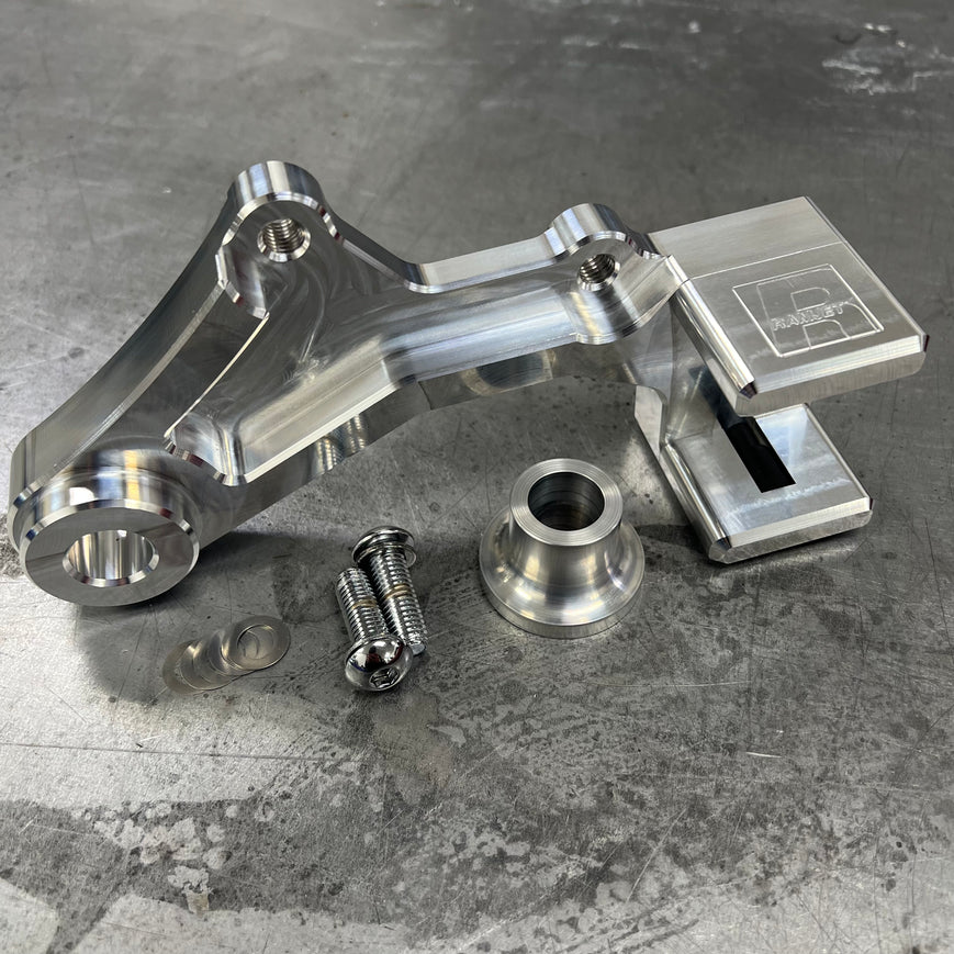 This bracket kit will be offered in gloss black or raw finish with a ball-milled Ramjet logo. The gloss black kit will include a gloss black spacer.