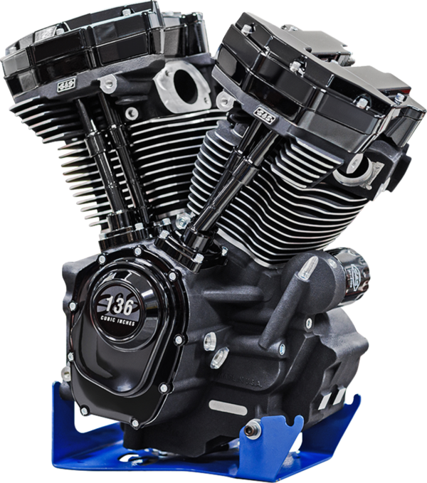 MK136 Black Edition Engine – Oil Cooled – 49 State – M8 Touring Cylinder Heads:, High-flow cylinder heads with premium seats, guides, valves, springs, and seals, +1.00 mm (EU 1,00 mm) oversized intake and exhaust valves, Valves are 0.030″(EU 0,030″) longer than stock for improved valvetrain geometry , 0.605″(EU 0,605″) max lift valve spring, Enlarged cooling passage around the exhaust seats, S&S exclusive breather boxes, Crankcase:, Patented dual-spray piston cooling jets, Precision machined oil scraper, Enlarged oil sump, Contoured floor allows oil to easily drain back to the sump, MK136:, Retains stock engine height, Includes forged pistons, S&S performance oil pump and cam support plate, premiun tappets and tappet cuffs, billet aluminum covers, sprocket shaft spacer, Champion spark plugs and cam cover badge
