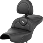 Tall lumbar support and wide driver saddle supports the back and legs for superior comfort, while the streamlined nose improves the rider’s reach to the ground, SaddleGel* in front and rear reduces tailbone pressure and increases circulation and comfort for both driver and passenger, Can be purchased with or without drivers backrest which has independent adjustments for fore-aft position, height and angle, and folds forward, Designed and made in the USA