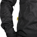 600 D high abrasion resistant polyester , High abrasion resistant mesh liner, DuPont Kevlarâ„¢ lining on impact areas such as the arms, back, and shoulders, Comes with interior back, elbow, & impact protection pads (removable), Hook and loop wrist closure seals out wind, Lower exterior pockets with YKK zippers, Double shoulder design and pre-curved sleeves for comfort in riding position, Elastic thumb loop keeps sleeves from riding up at high speeds, Embossed button snap wind cover with double pull YKK zipper, YKK zippers in underarm area for ventilation, Waist fitting buttons, No flap collar