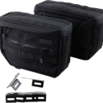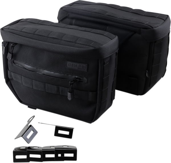 Compatible with fixed or detachable sissy bars, MOLLE attachments for universal anchoring points to secure the bagdown as well as use for additional attachments, Easy-on, easy-off installation, Structured to hold shape, Made from 1680-denier ballistic nylon, Water-resistant YKK® zippers, Hi-viz interior to improve interior visibility, Straps not included, Works with most stock taillight and blinker assemblies (must have a minimum of 11” between shocks and blinkers), Additional mounting strap is available- part # 3550-0416