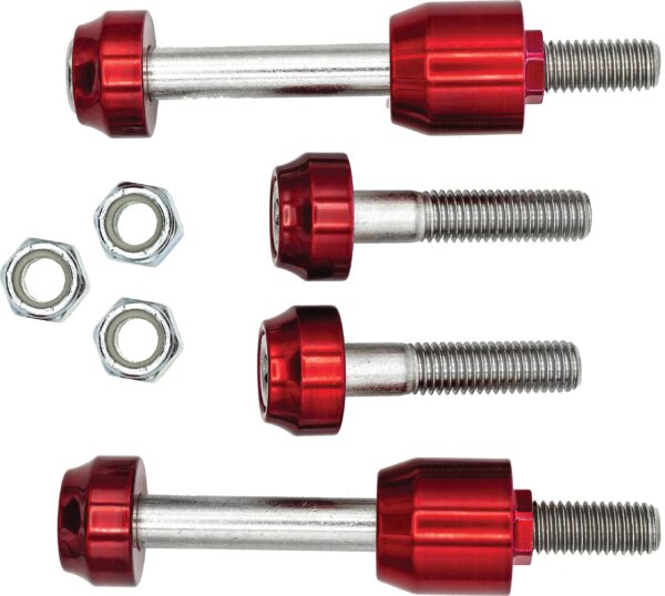 Santoro Fabworx Way Kool Shock Mount Kits add a tinge of color to the dark shock area on Dyna’s. Kits come with upper and lower Stainless-Steel hardware with your choice of Chacho color and upper spacer in either powder coated Wet Black, Red, Gold or Blue. Lifetime Warranty. Made in the USA.